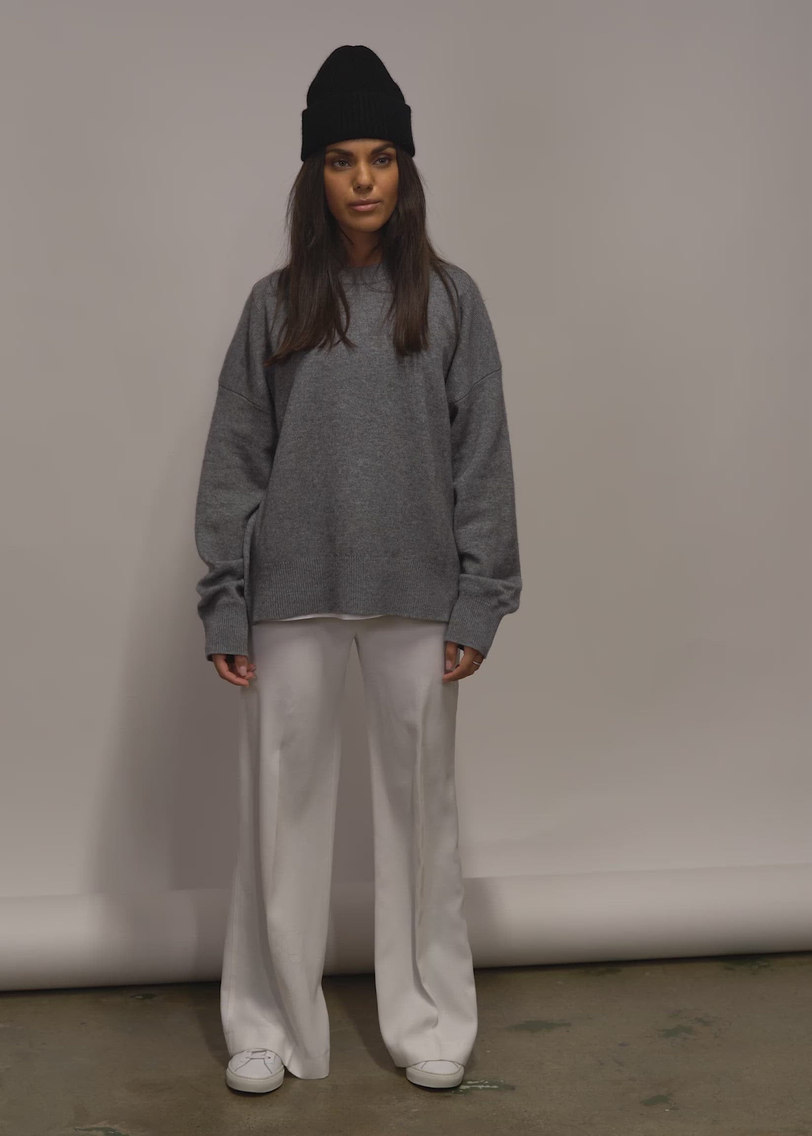 Fully fashioned, knitted with 6 ply (70% Merino Wool/ 30% Cashmere) to achieve the softness and chunkier look we wanted.